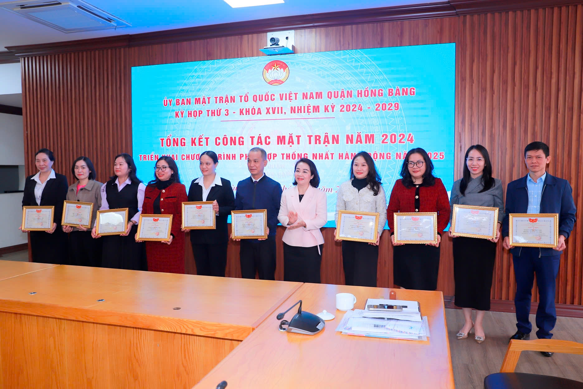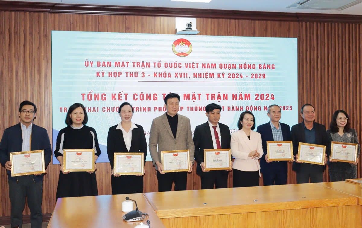 Nhân dịp này, Ủy ban MTTQ Việt Nam quận Hồng Bàng tặng giấy khen 10 tập thể và 10 cá nhân đạt thành tích xuất sắc trong công tác Mặt trận năm 2024.