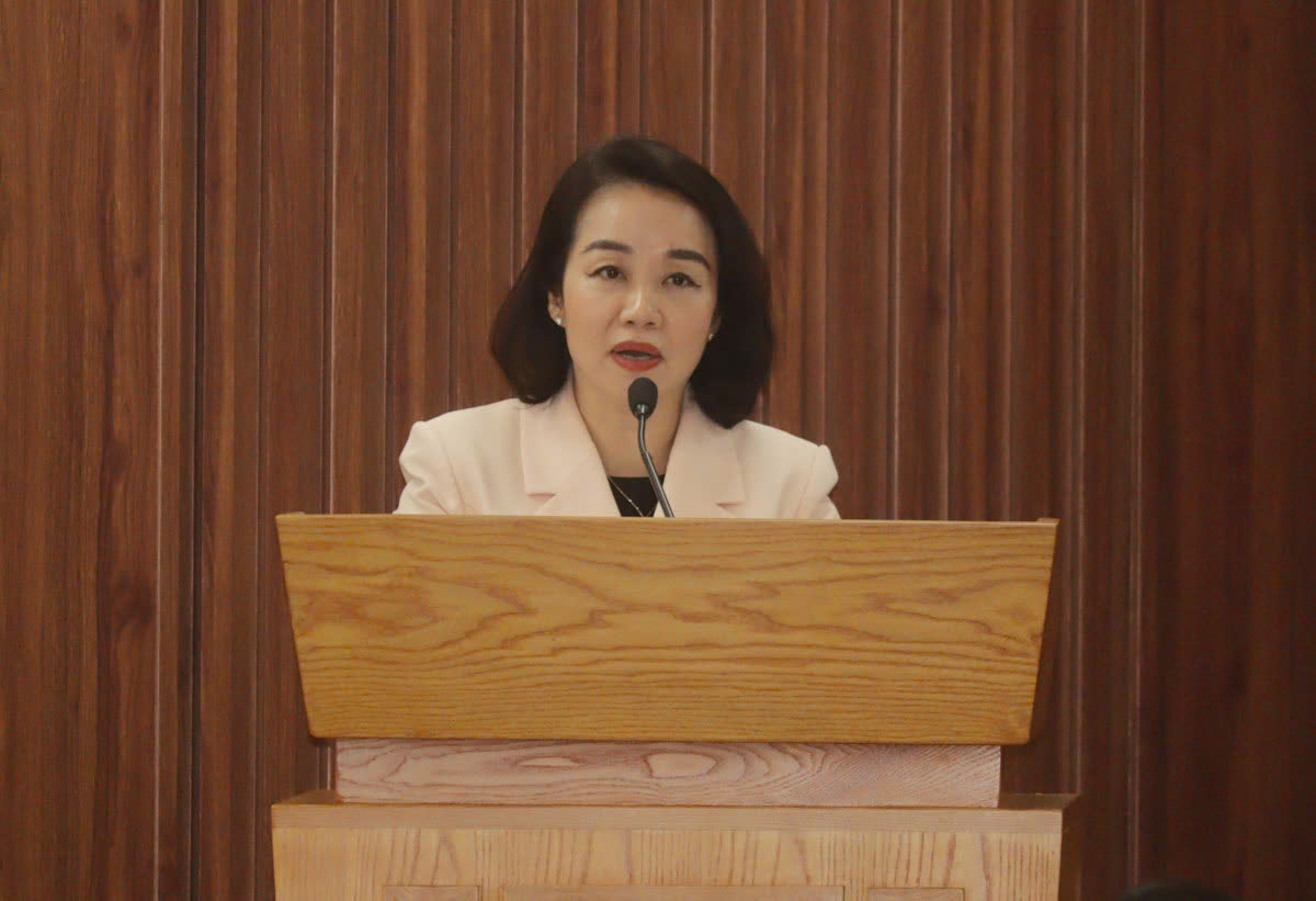 Đồng chí Lê Thị Lan, Uỷ viên Quận uỷ, Chủ tịch Uỷ ban Mặt trận Tổ quốc Việt Nam quận phát biểu chỉ đạo Hội nghị