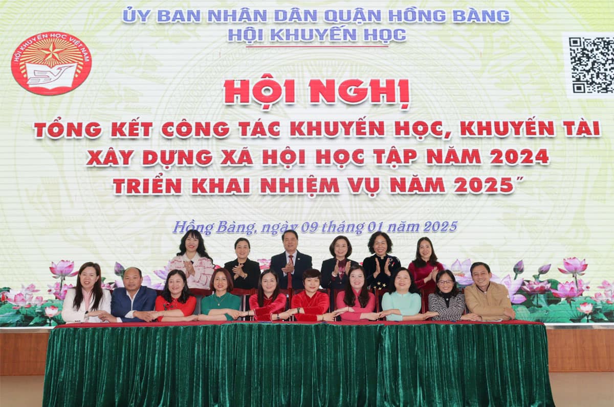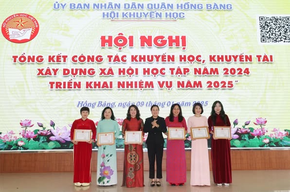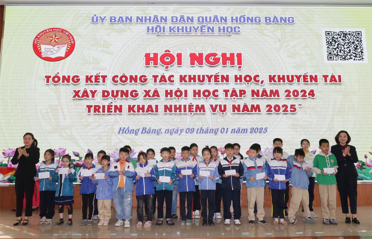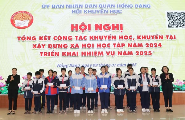 Chiều 9/1, Hội Khuyến học quận Hồng Bàng tổ chức Hội nghị tổng kết công tác khuyến học, khuyến tài, xây dựng xã hội học tập năm 2024; triển khai nhiệm vụ năm 2025; đồng thời tặng quà học sinh vượt khó học giỏi nhân dịp Tết Nguyên đán Ất Tỵ năm 2025.