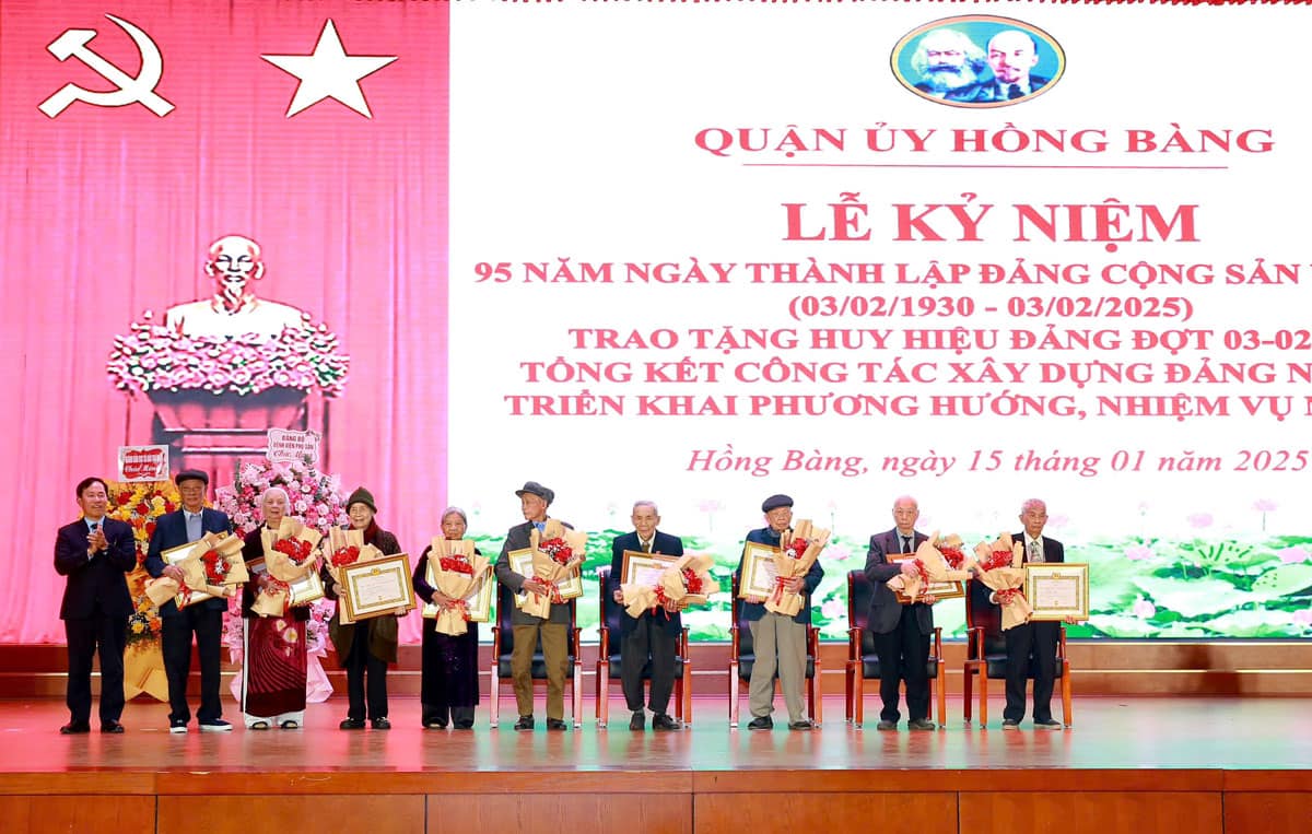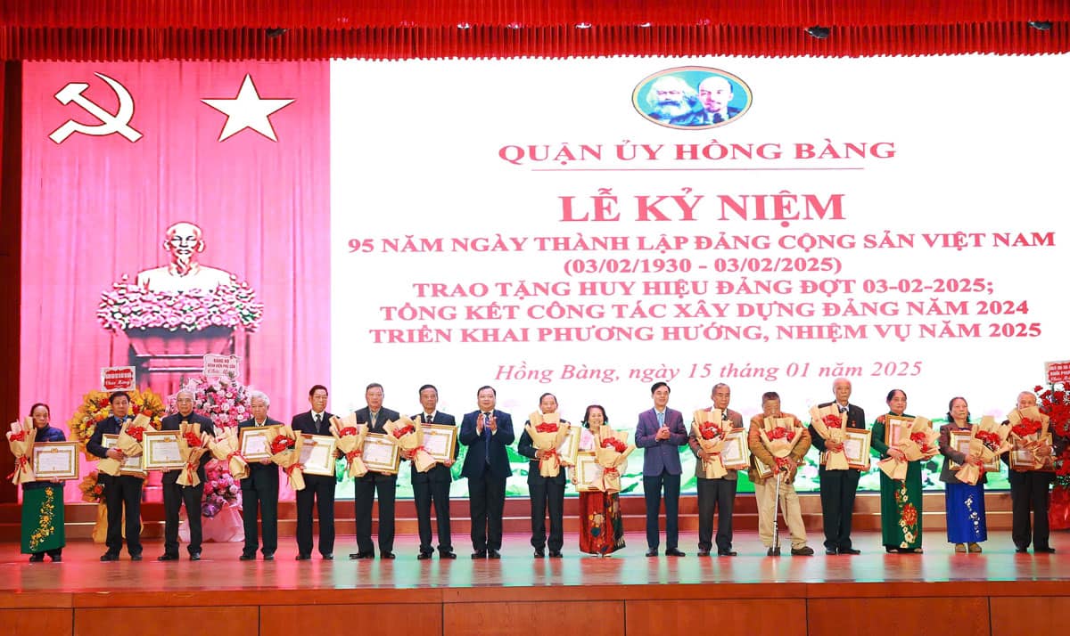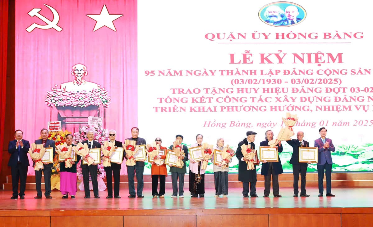 Đợt 03/02/2025, quận Hồng Bàng có 165 đảng viên được trao huy hiệu 80, 75, 65, 60, 55, 50, 45, 40 và 30 năm tuổi đảng. Tại Lễ kỷ niệm, Quận ủy Hồng Bàng tổ chức trao tặng huy hiệu Đảng dịp 3/2 cho 57 đồng chí. Trong đó, có 02 đồng chí 75 năm tuổi đảng, 14 đồng chí 65 năm tuổi Đảng, 14 đồng chí 60 năm tuổi đảng, 10 đồng chí 55 năm tuổi đảng, 17 đồng chí 50 năm tuổi đảng.