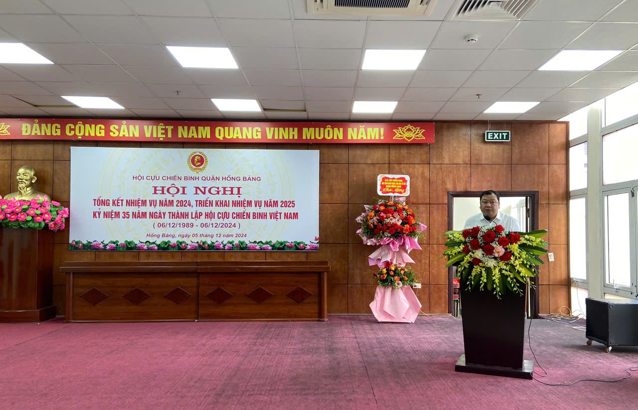 Sáng ngày 05/12/2024, Quận ủy Hồng Bàng tổ chức Hội nghị Hội nghị kỷ niệm 35 năm Ngày truyền thống Hội Cựu chiến binh Việt Nam (06/12/1989 - 06/12/2024) và Tổng kết công tác Hội năm 2024. Dự và chỉ đạo Hội nghị có đồng chí Phạm Công Lục, Phó Chủ tịch Hội Cựu chiến binh thành phố và đồng chí Đỗ Việt Hưng, Phó Bí thư Thường trực Quận uỷ, Chủ tịch Hội đồng nhân dân quận.